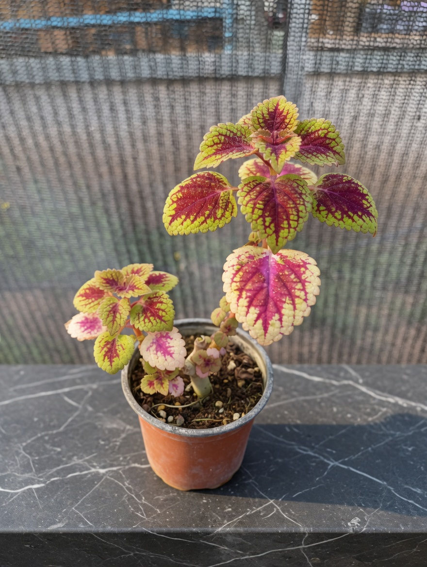 עציץ בינוני של קולאוס (נדנונית מכלוא) עם עלים צבעוניים מדהימים באדום, צהוב וירוק. גודל, טופח והושקה על ידי הדיירים ובוגרי בית מען במשתלה שלנו. מתאים לבית, מרפסת או כמתנה מלאת משמעות. דורש אור בהיר והשקיה ששומרת על לחות קלה.